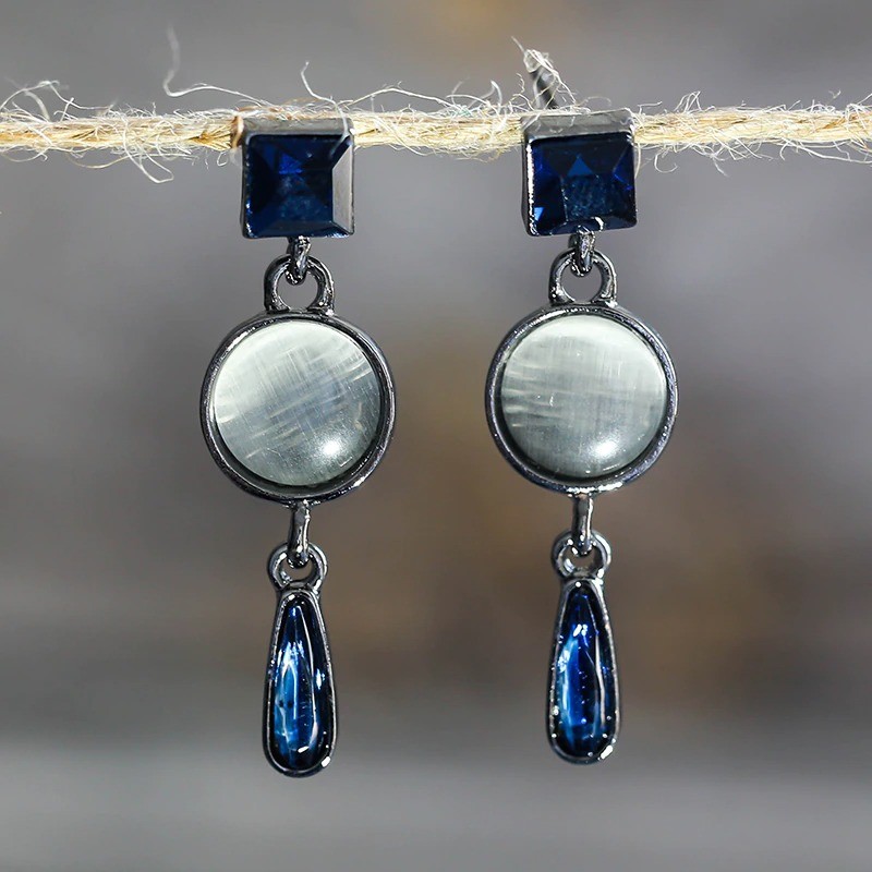 Material: metal de bijuteria, imitação de pedra da lua, contas