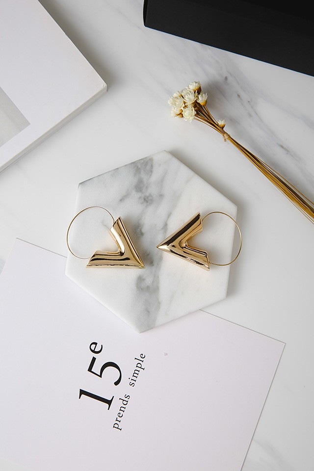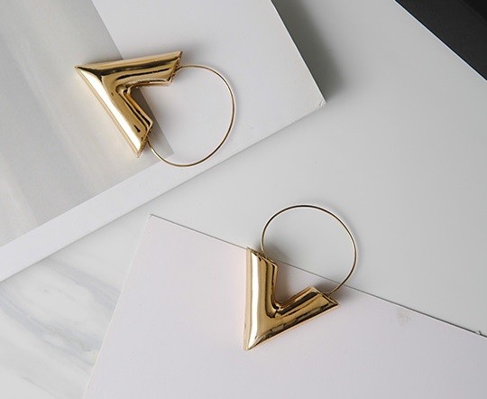 Brincos femininos elegantes em forma de letra V serão um excelente complemento para o seu conjunto social.