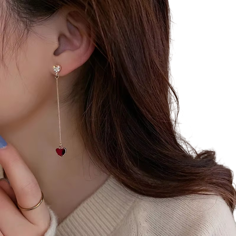 Brincos longos românticos pendentes com design de coração e zircões, joias elegantes para mulheres, ideais para uso diário