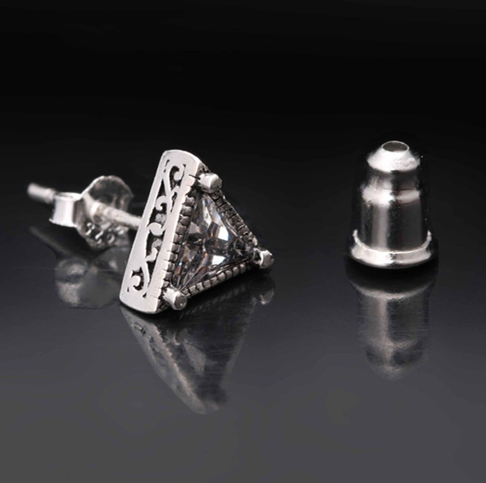 Estes brincos masculinos em forma de triângulo, adornados com zircão, vão ficar bem em qualquer homem.