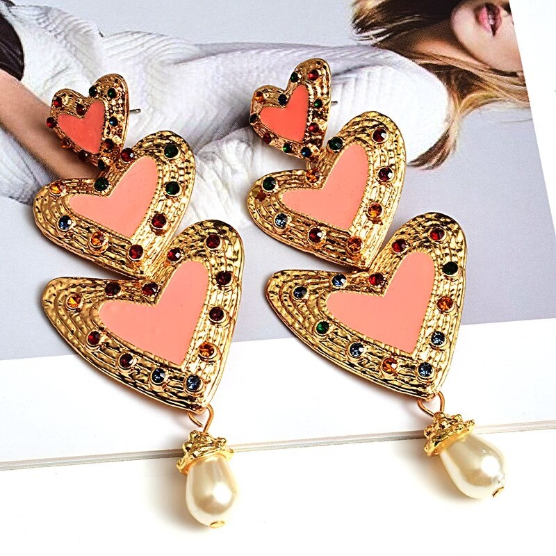 Brincos pendentes em forma de coração