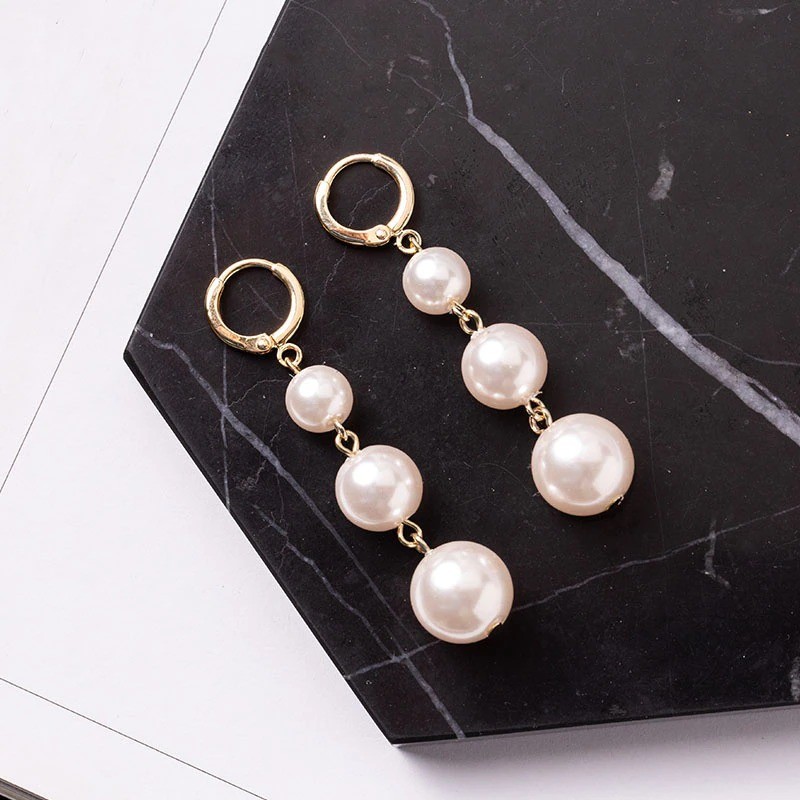 Brincos pendentes femininos com pérolas