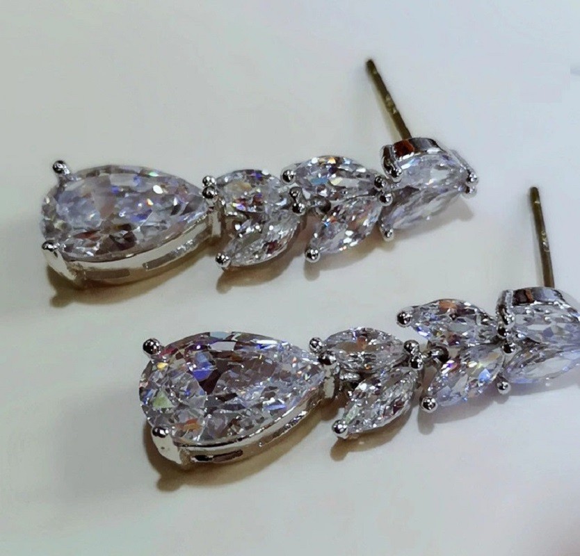 Brincos pendentes femininos com zircónias