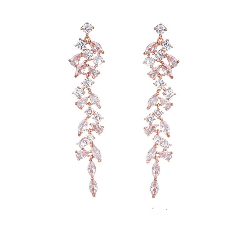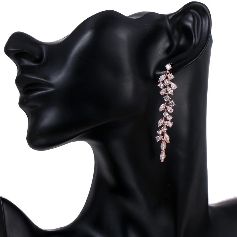 Brincos pendentes femininos com zircónias