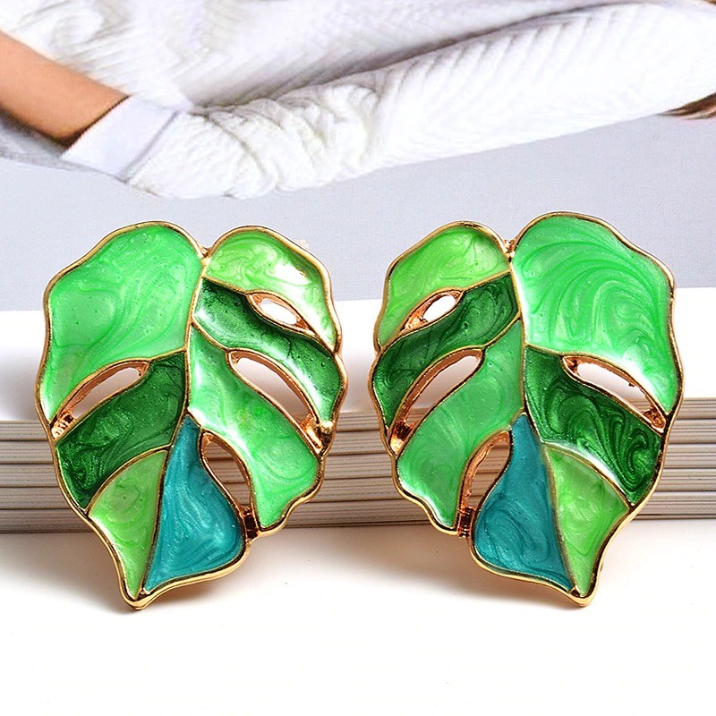 Brincos pendentes femininos folhas G1075