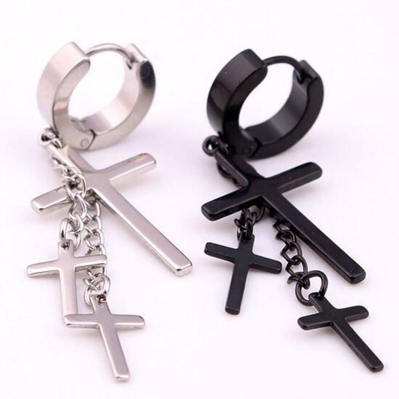 Você gosta de cruzes? Estes brincos masculinos com três cruzes são um excelente acessório de moda.