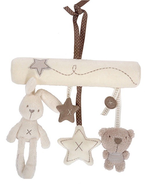 Brinquedo de peluche suspenso na combinação de coelhinho, estrelinha e ursinho.