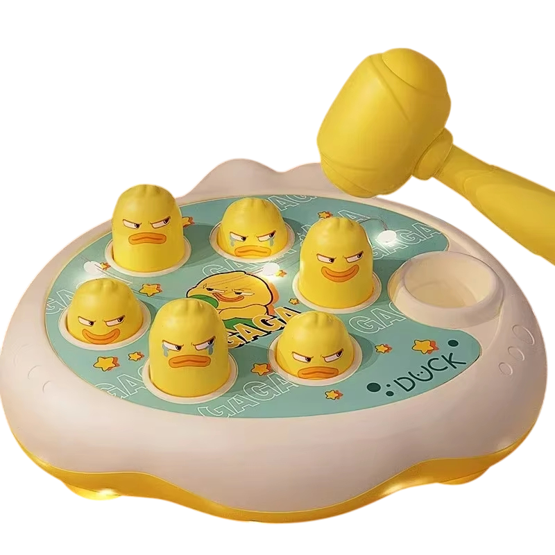 Brinquedo interativo de impacto com tema de pato que apoia a motricidade, concentração e aprendizagem divertida. Martelo seguro e construção robusta para brincadeiras diárias. Descrição completa