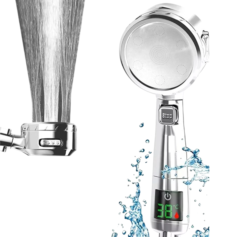 Cabeça de chuveiro LED com visor e 4 modos de jato Chuveiro ajustável e económico com alta pressão Medição digital da temperatura