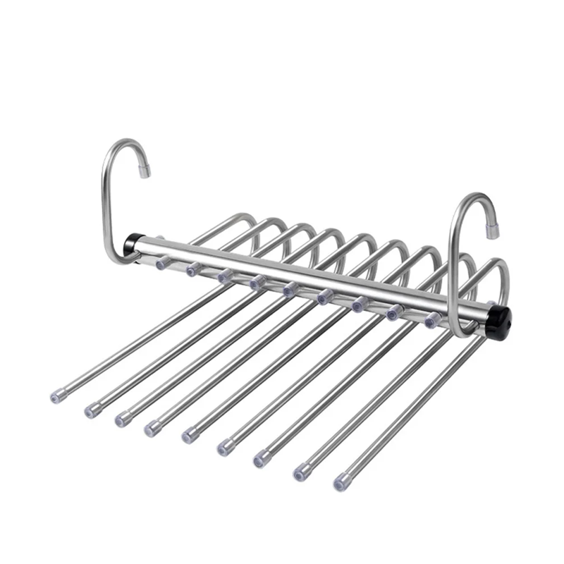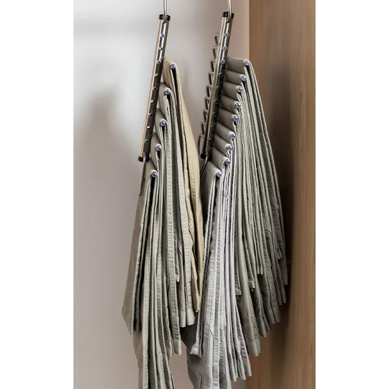 Está à procura de uma forma eficaz de economizar espaço no seu armário e, ao mesmo tempo, manter a organização das roupas? Este cabide de calças em aço inoxidável de 9 níveis é a solução ideal para quem quer aproveitar ao máximo o espaço. Graças às dimensões compactas e ao design inteligente, pode facilmente pendurar várias peças de roupa num só lugar. A estrutura resistente em aço inoxidável garante uma longa durabilidade e fácil manutenção. O cabide é adequado não só para calças, mas também para saias, lenços ou toalhas.