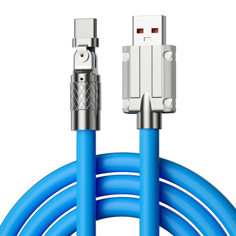 • Conclusão: O cabo de carregamento rápido com conector USB-C rotativo 120 W 6 A 2 m é um produto indispensável para quem valoriza a rapidez, eficiência e flexibilidade no carregamento dos seus dispositivos eletrónicos. O seu alto desempenho e design inovador garantem que terá sempre o seu telefone ou tablet totalmente carregado.