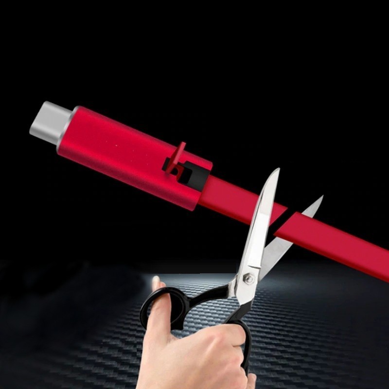 O cabo pode ser encurtado conforme necessário com uma tesoura.
