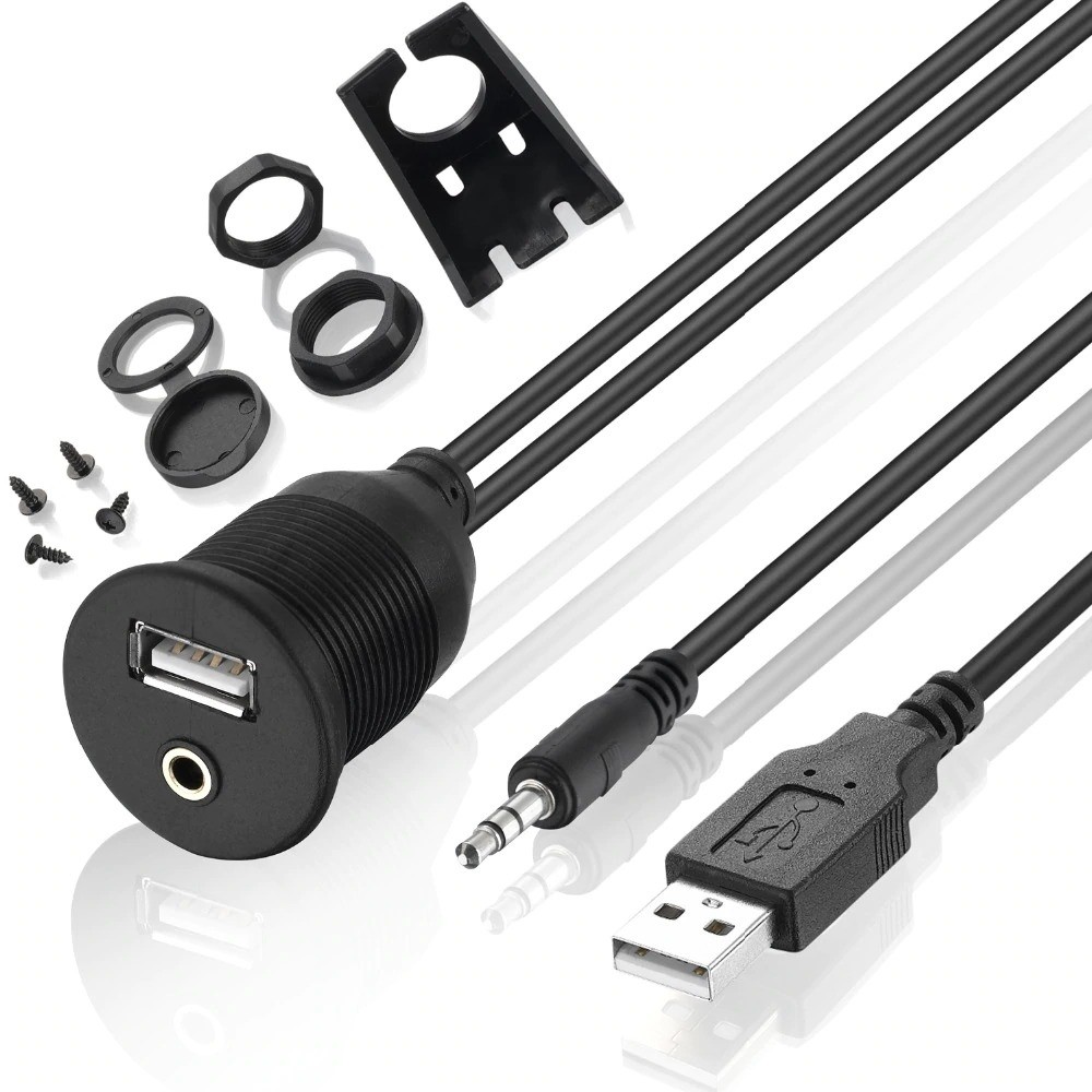 Cabo de extensão USB 2.0 / jack de 3,5mm para carro