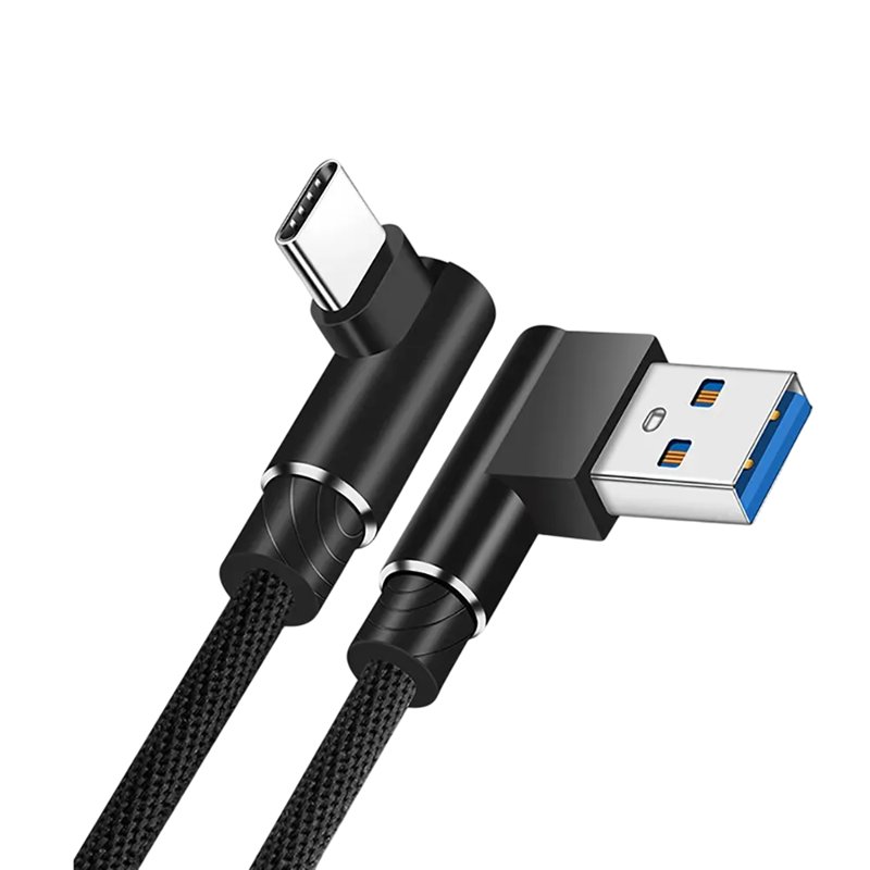 Cabo USB C e USB A de carregamento rápido a 90 graus 1,5 m 40W cabo de dados com ângulo reto 5A carregamento rápido e transferência de dados