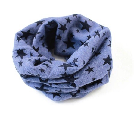 Cachecol com estrelas em malha de algodão, que aquece e protege as crianças do vento.