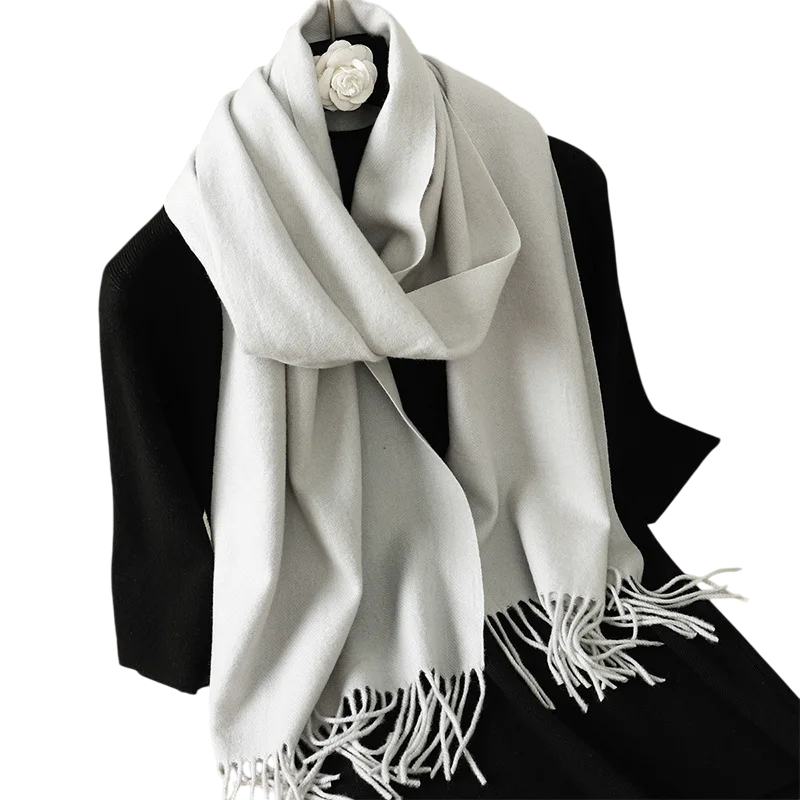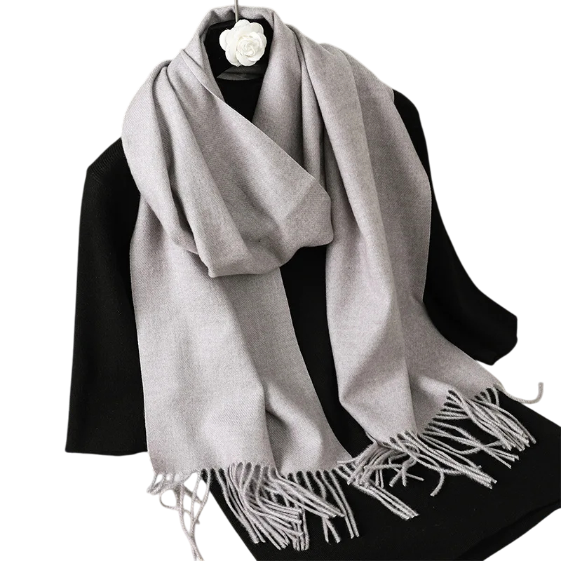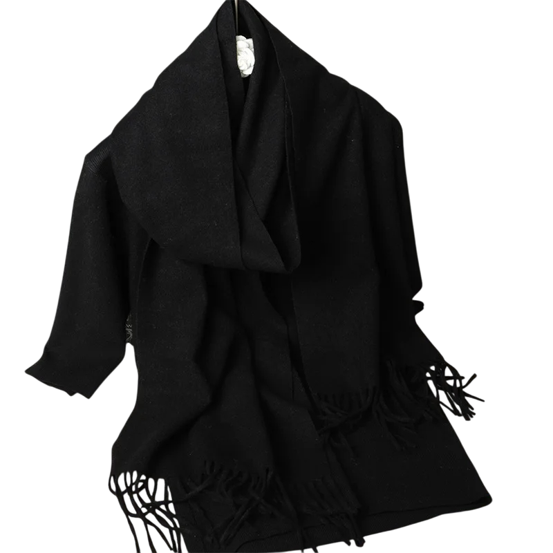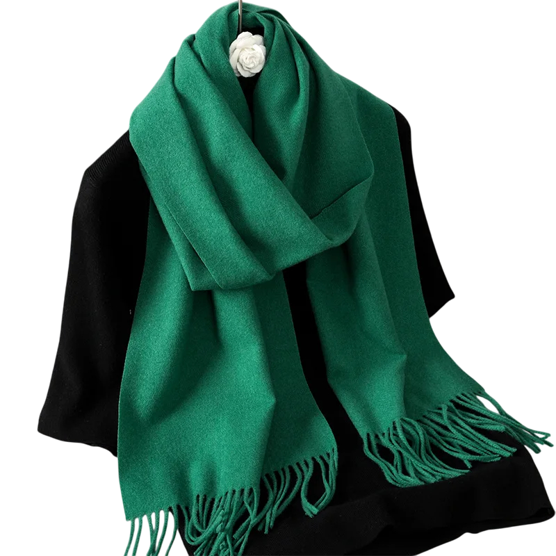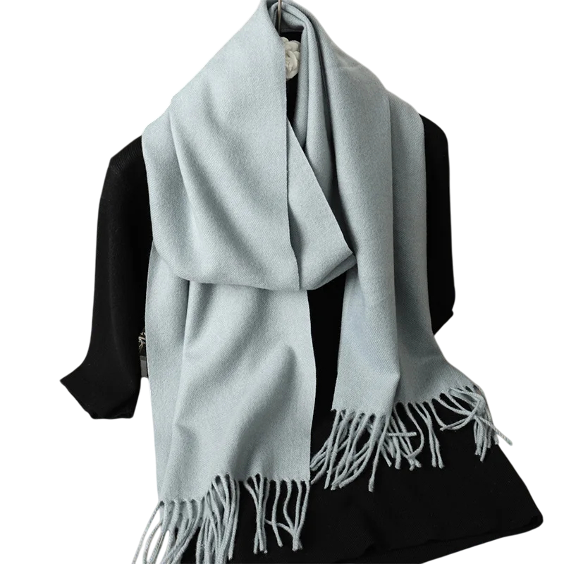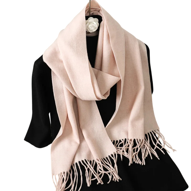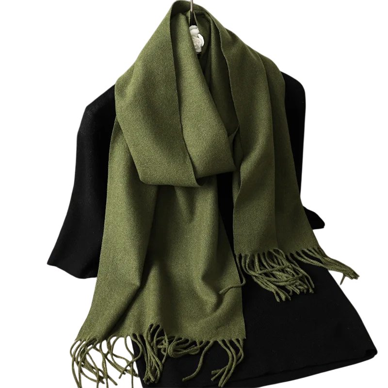 Cachecol feminino leve de cor sólida com franjas, com dimensões de 33x180 cm. Agradável ao toque, adequado para uso diário em dias frios. Descrição completa