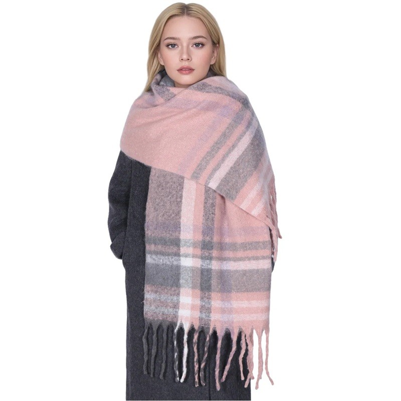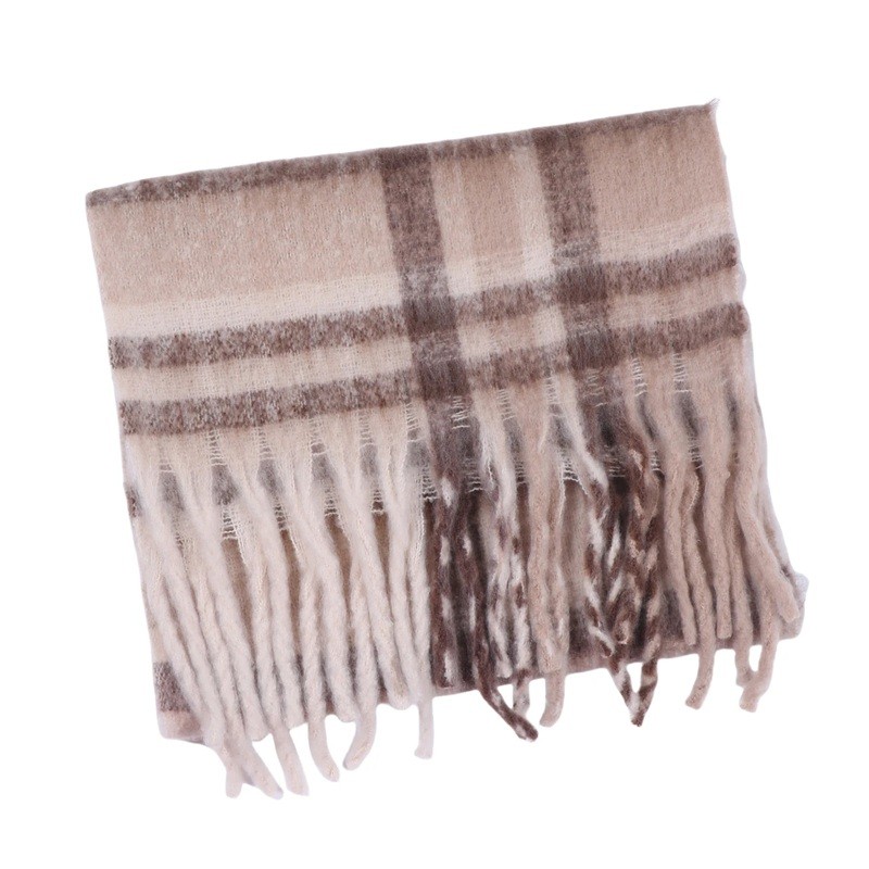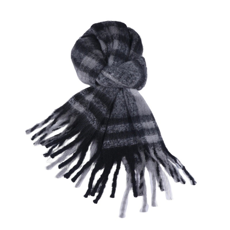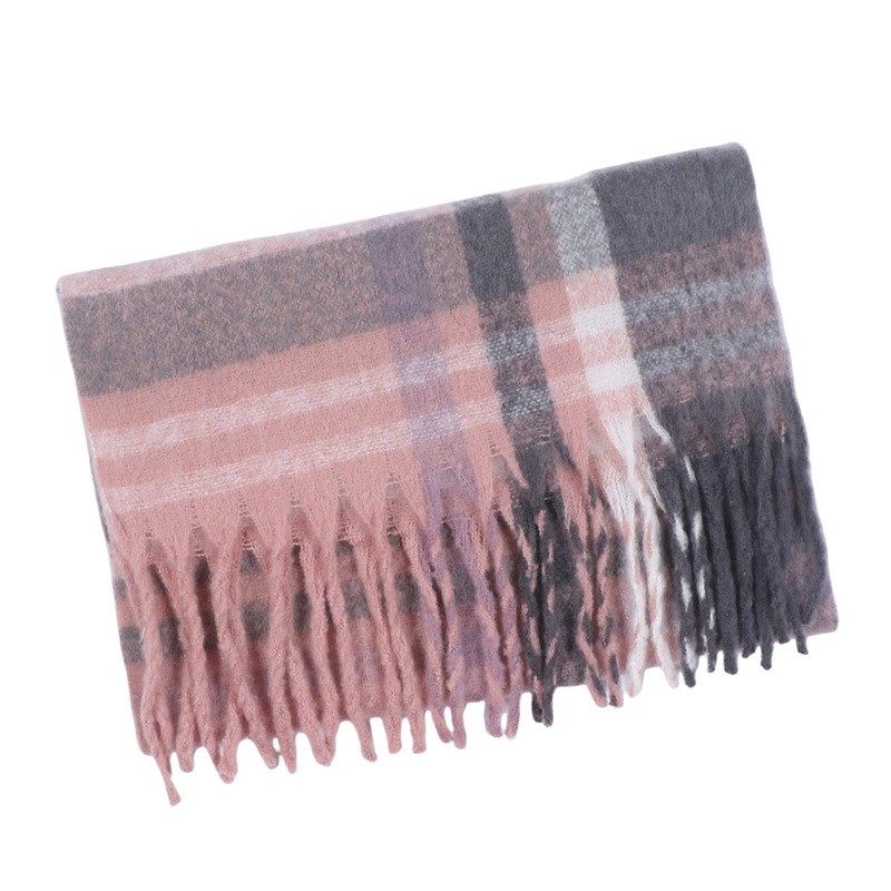 Cachecol riscado para senhora em suave imitação de caxemira oferece calor macio, aparência elegante e conforto agradável. Ótimo para dias de inverno e uso diário. Descrição completa