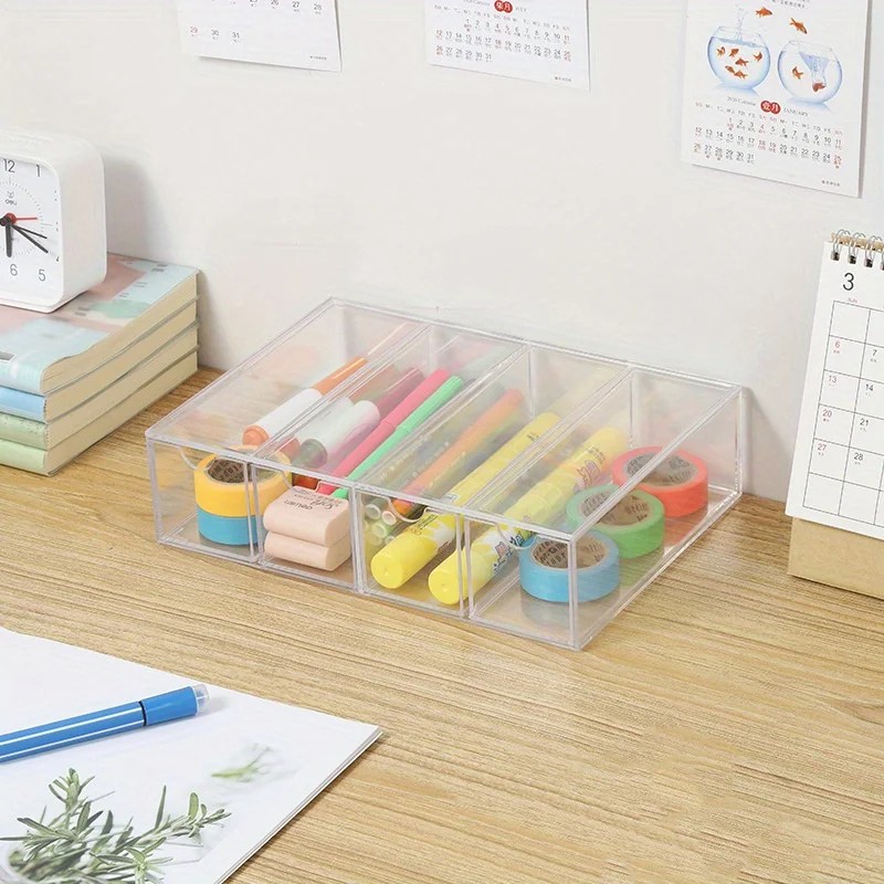 Página inicial Página inicial Saúde e beleza Acessórios de saúde e beleza Estojos para óculos Caixa de armazenamento transparente para óculos com 4 gavetas 24,5 x 17,5 x 6,3 cm Organizador para óculos de sol e de grau Suporte doméstico