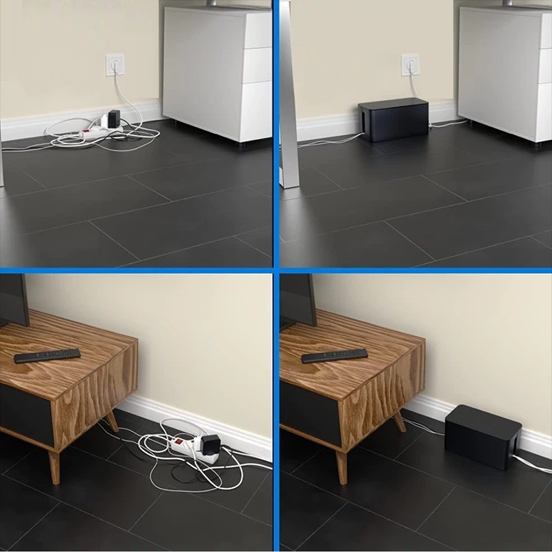 Não quer que o cabo de extensão no chão ou na mesa estrague o design da sua casa? Esconda-o nesta caixa estilosa. A caixa possui orifícios para que todos os cabos possam continuar a ligar-se aos seus dispositivos. A caixa pode ser aberta e fechada a qualquer momento. A utilização é muito simples.