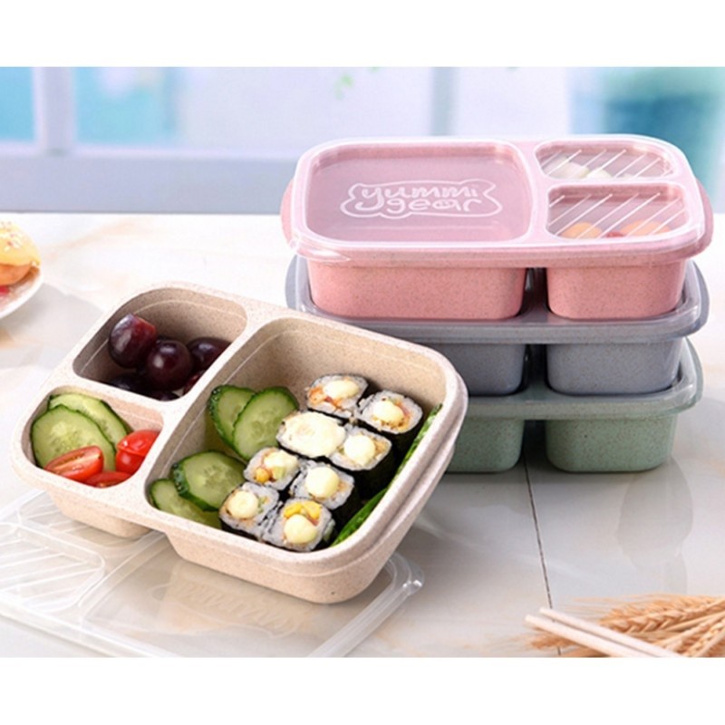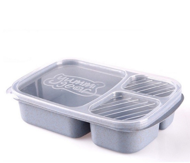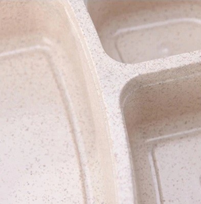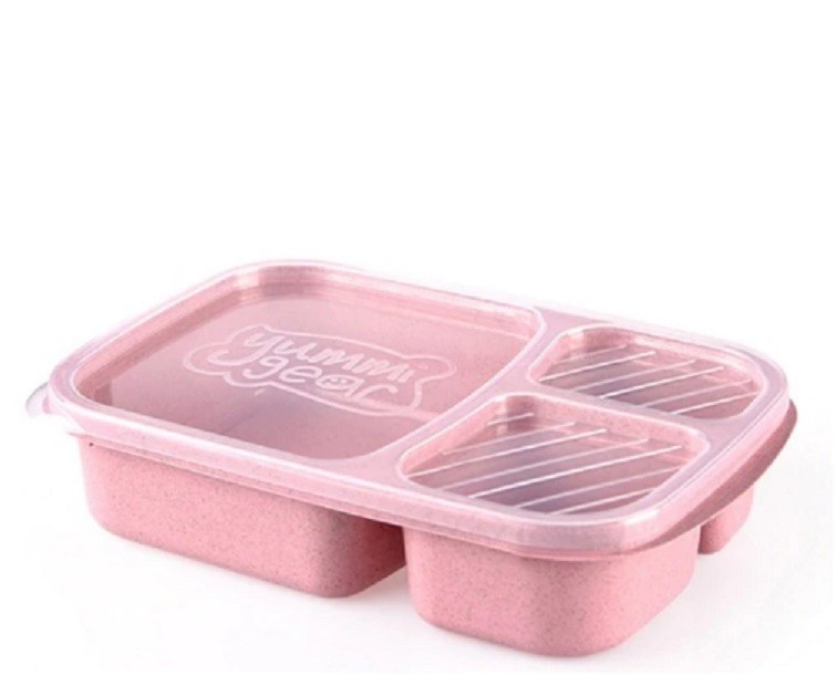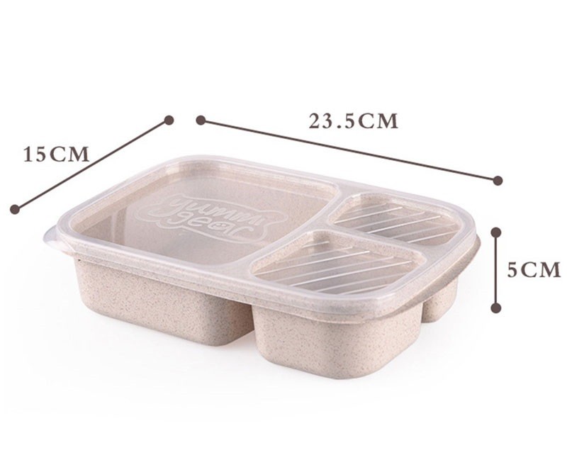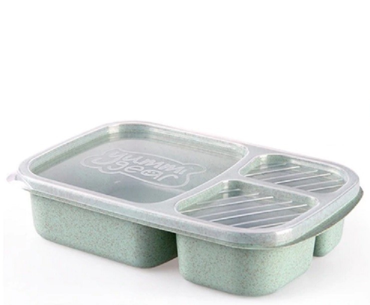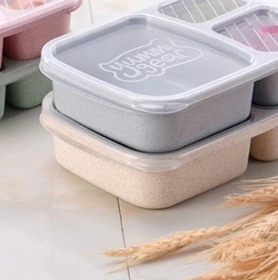 Esta caixa de lanche é feita de palha de trigo e é muito prática.