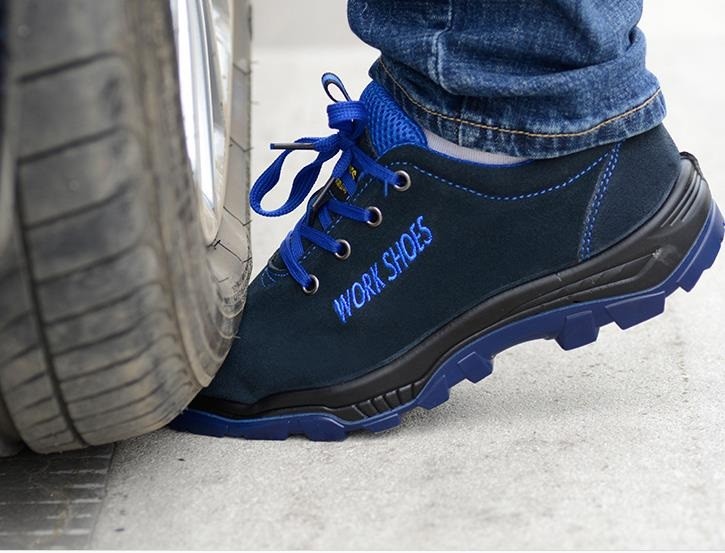 Calçado de segurança com biqueira de aço que protege os seus pés contra lesões.