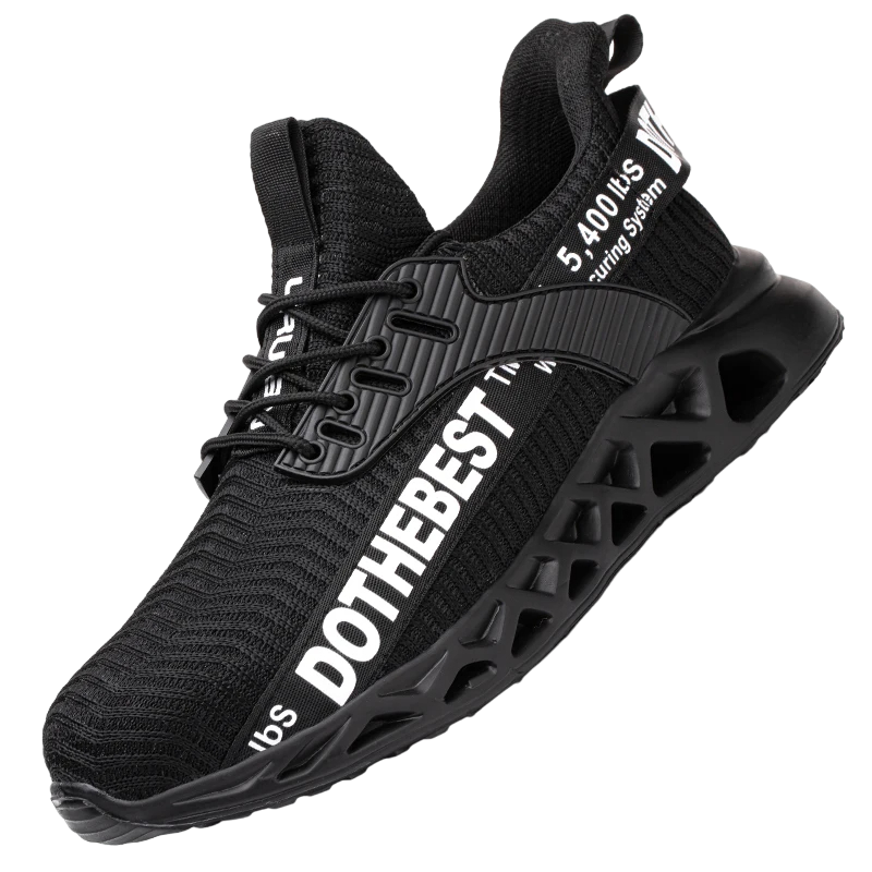Calçado de segurança unisex com biqueira de aço, resistente a perfurações, ideal para ambientes de trabalho exigentes. Proteção confortável e fiável para os pés. Descrição completa