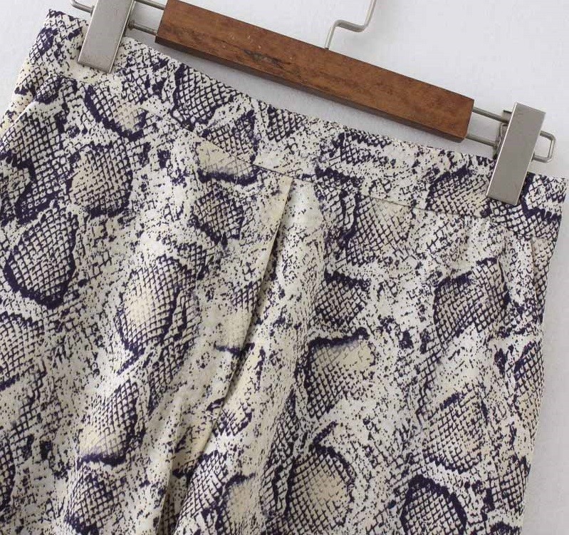 Página inicial Página inicial Roupa e acessórios Roupa de mulher Calças de mulher Calças 3/4 femininas com padrão de cobra