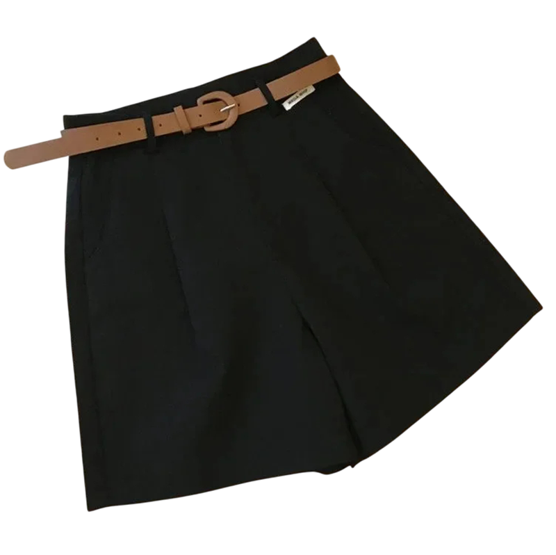 Calças curtas largas de algodão para senhora com cinto e fecho de zip. Calções em A de verão em tecido leve. Calças elegantes para o tempo livre e para a cidade