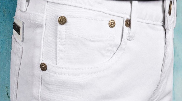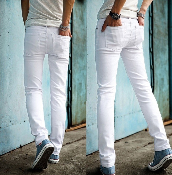 Calças de homem bonitas, ajustadas e descontraídas para uso diário na cor branca.