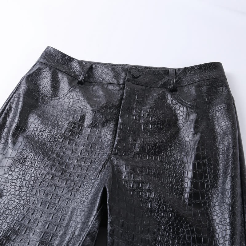 Página inicial Página inicial Roupa e acessórios Roupa de mulher Calças de mulher Calças de senhora em pele sintética com padrão