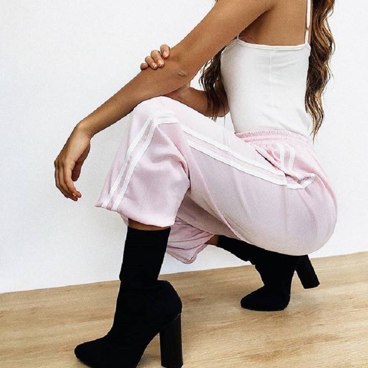 Calças de treino femininas com riscas A211