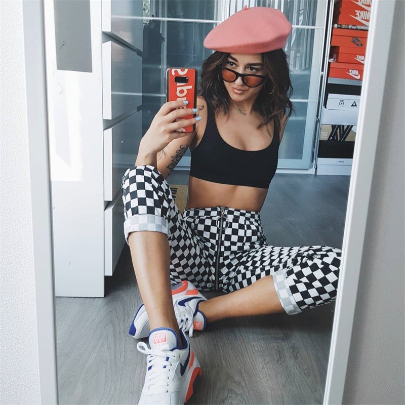 Página inicial Página inicial Roupa e acessórios Roupa de mulher Calças de mulher Calças de xadrez para senhora preto e branco