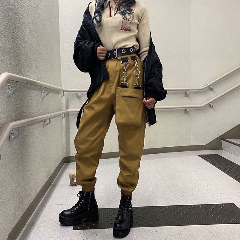 Calças femininas com correntes