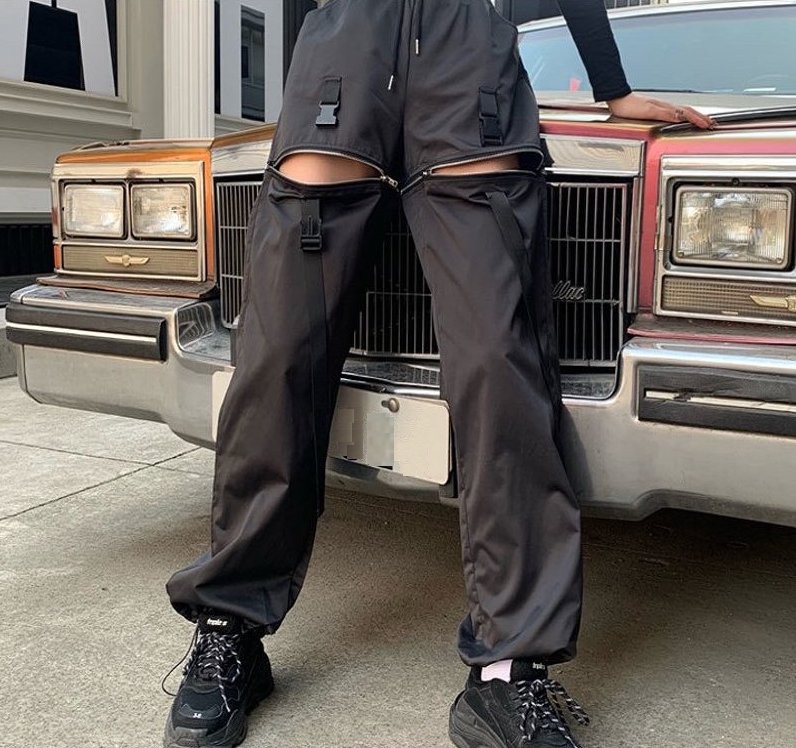 Calças femininas com fechos
