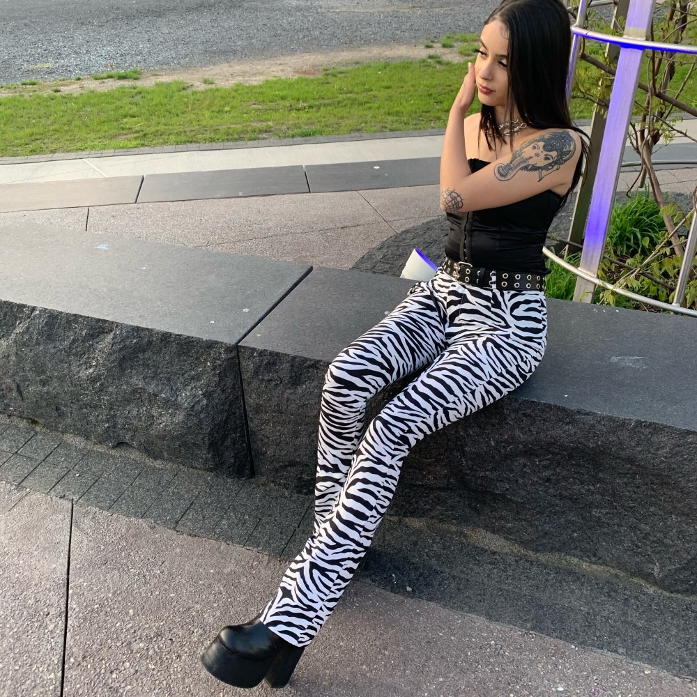 Calças femininas com padrão de zebra