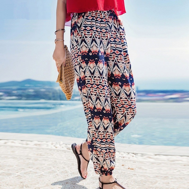 Calças harém femininas com padrão