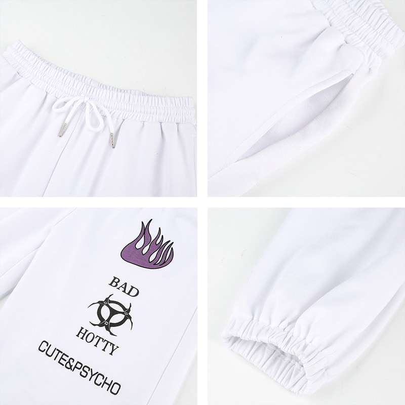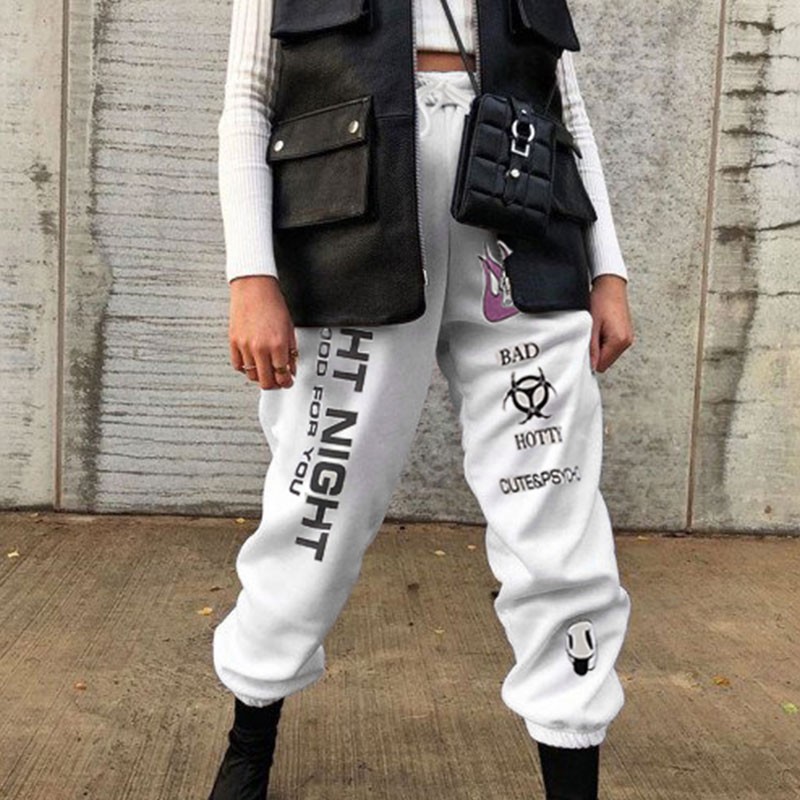 Calças jogger brancas para senhora com estampado