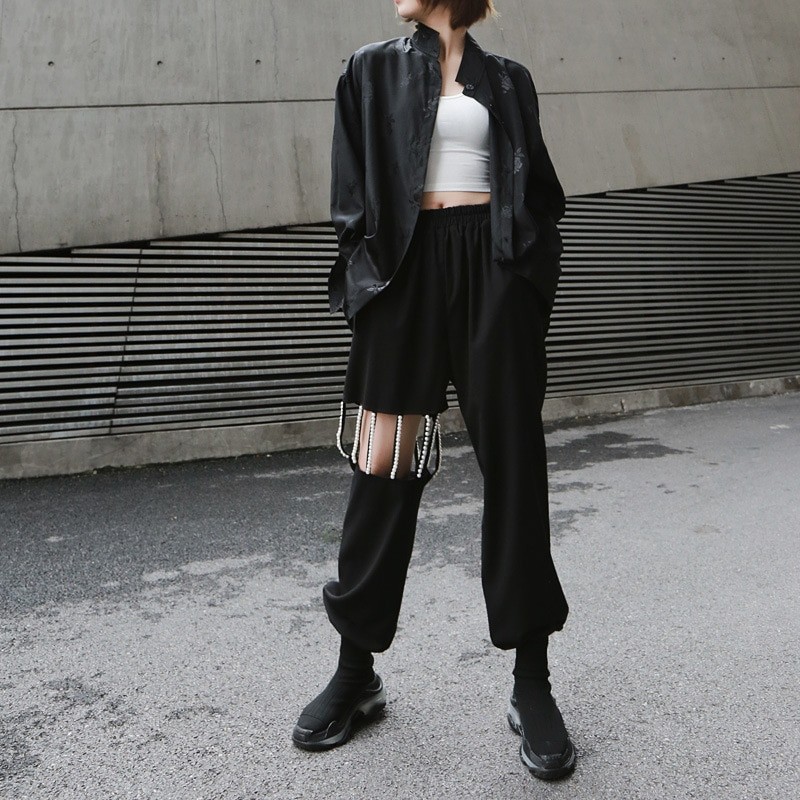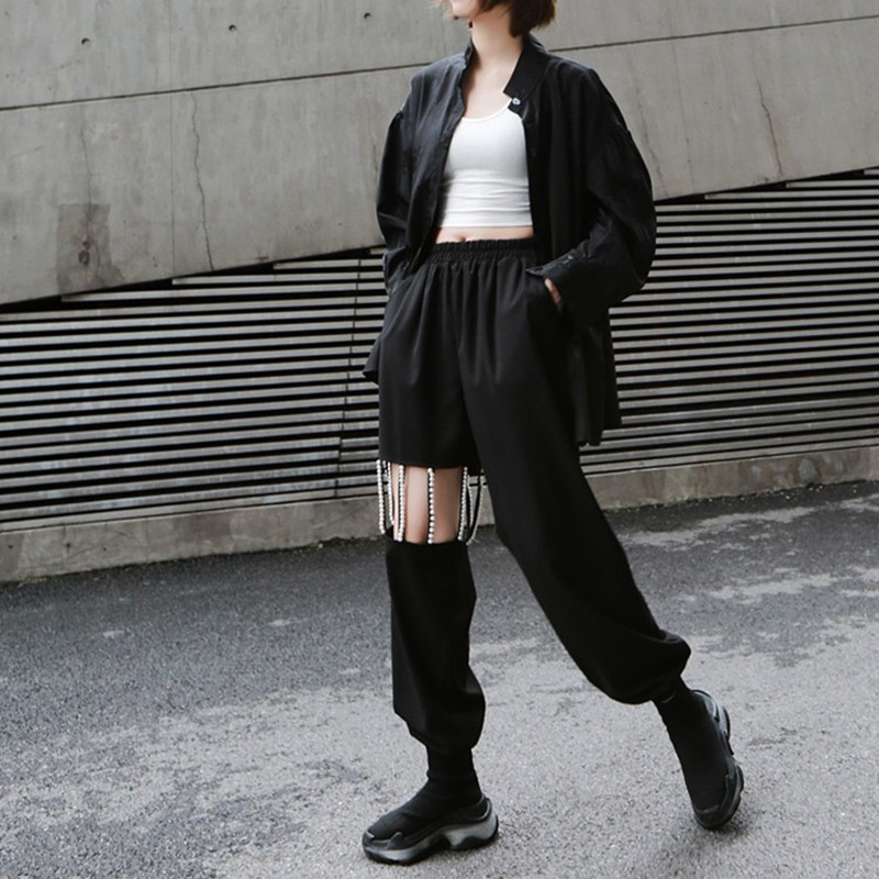 Calças jogger femininas com pérolas