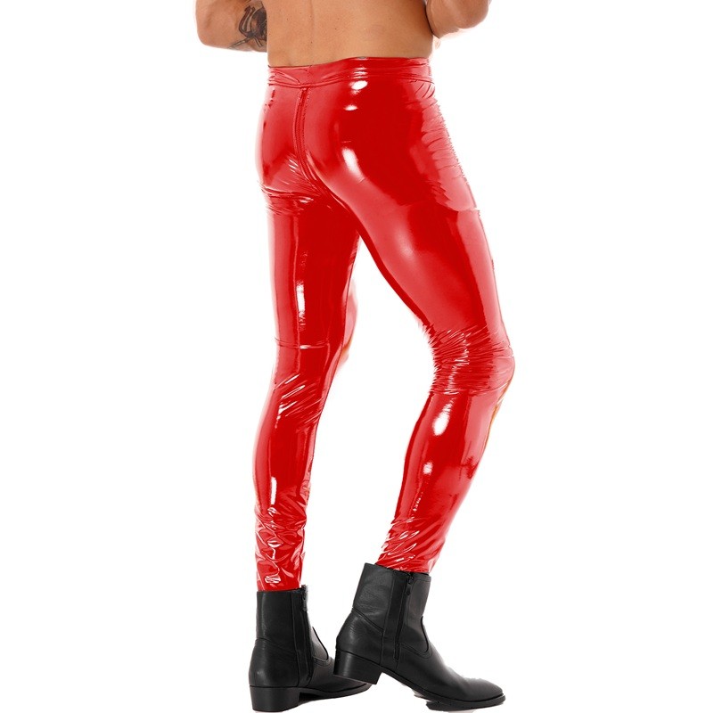 Conteúdo da embalagem: 1x calças masculinas justas brilhantes de pele sintética