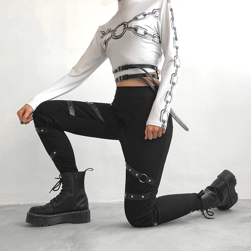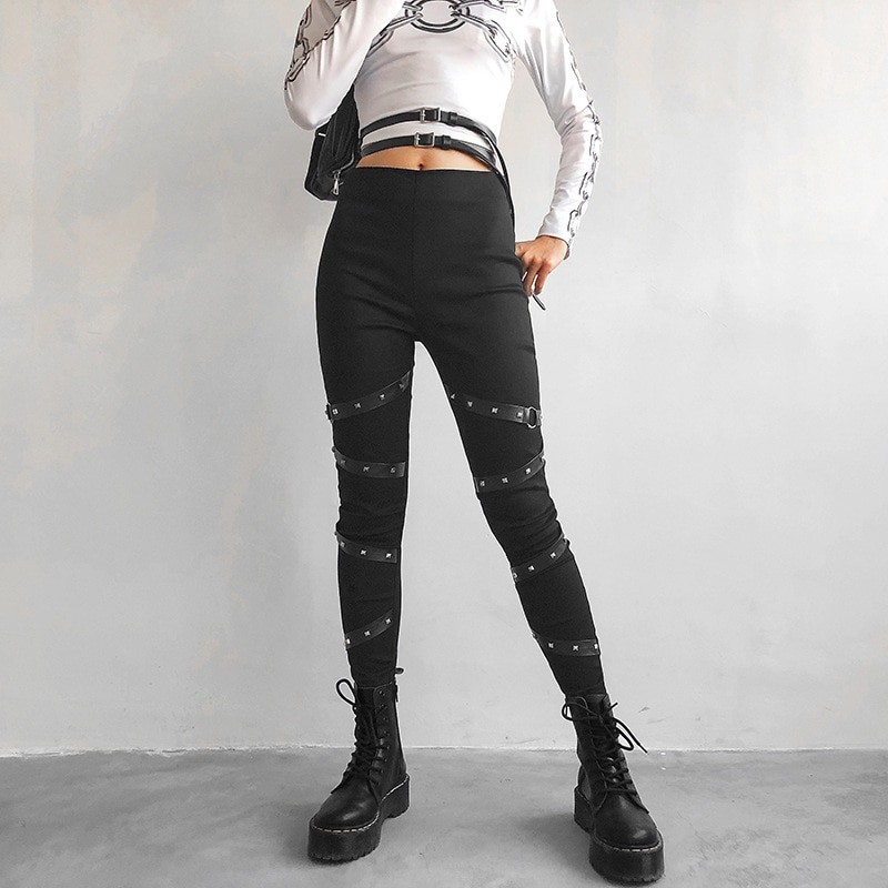 Calças pretas femininas com cintos