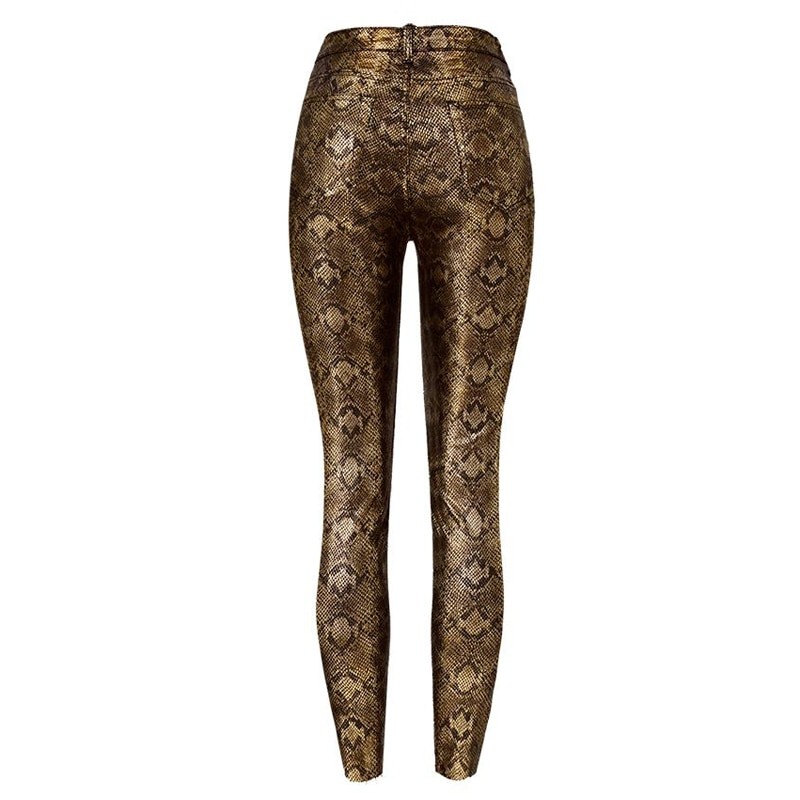 Calças skinny femininas com padrão de cobra