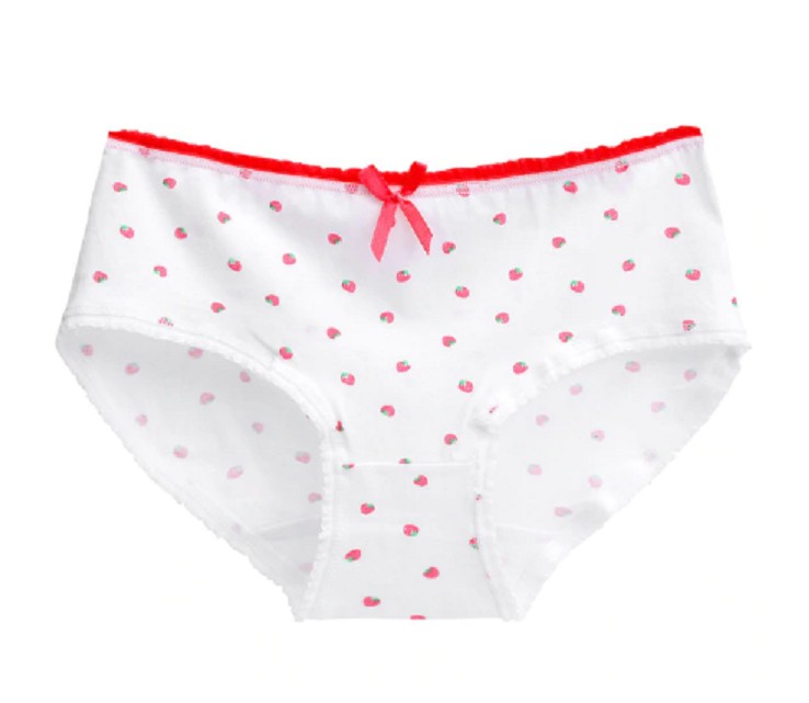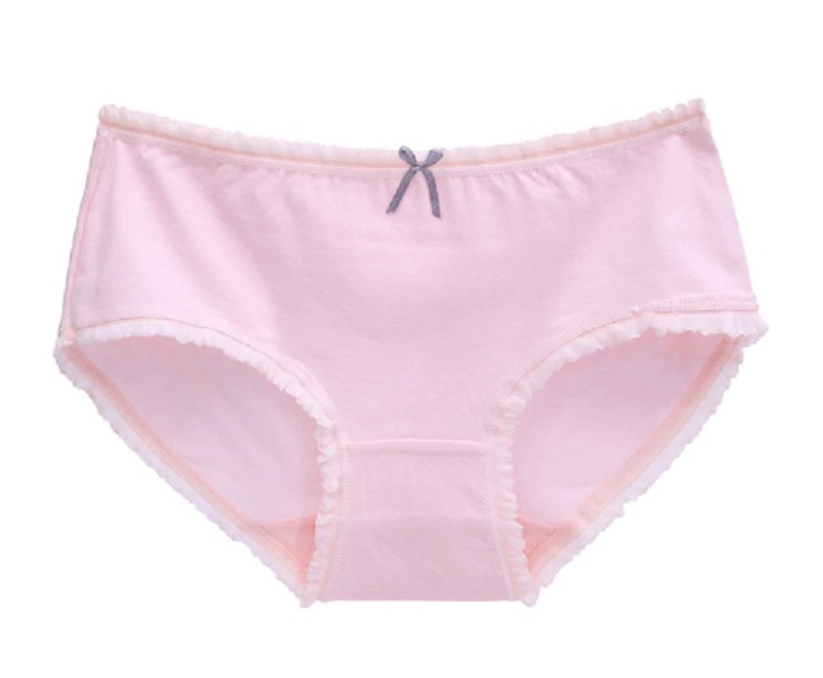 A bainha das calcinhas é adornada com um pequeno laço adorável.