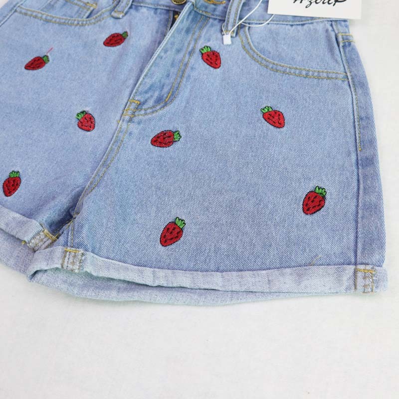 Calções de ganga femininos com joaninhas J1084