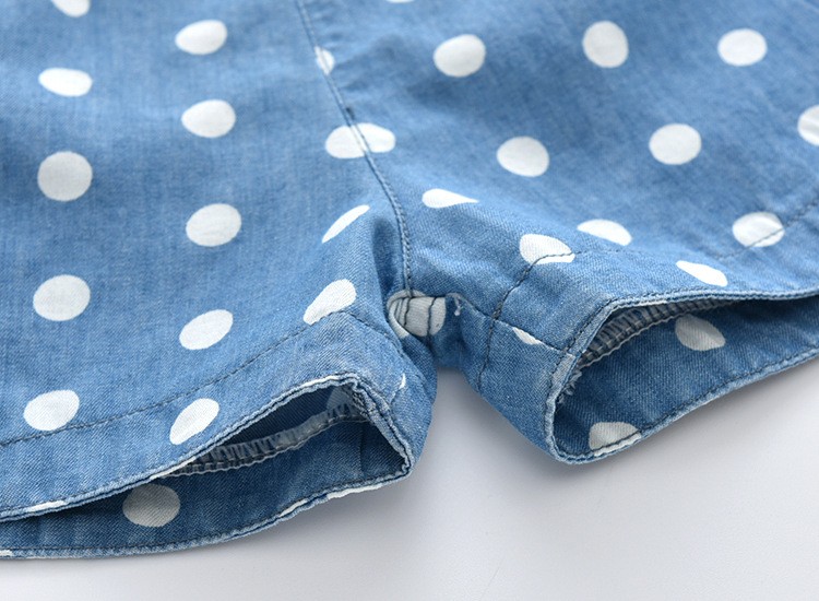Calções de menina com bolinhas brancas na cor azul são um verdadeiro sucesso do verão.