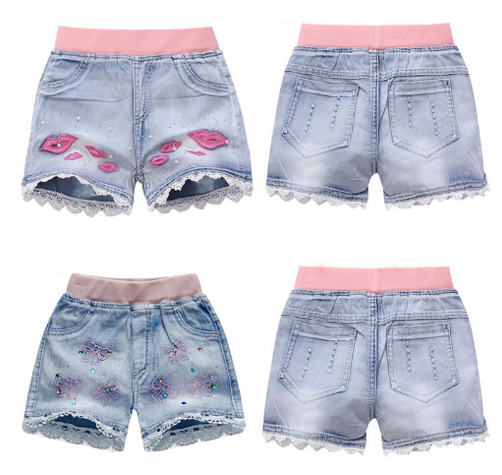 Bonitos calções de ganga com vários estampados nos bolsos traseiros.