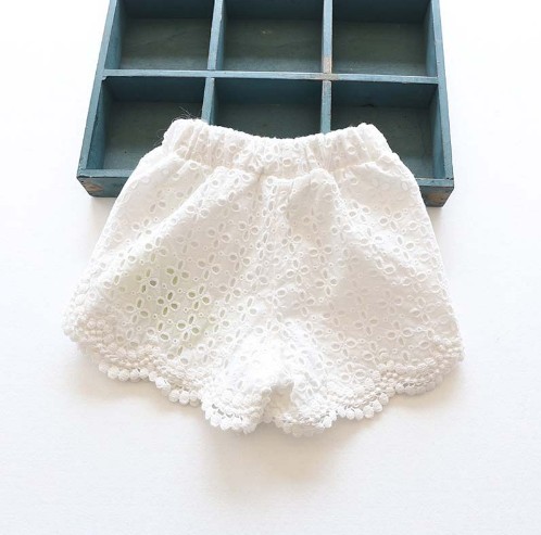 Calções de menina em estilo moderno com perfurações, que ficam ótimos.
