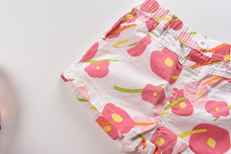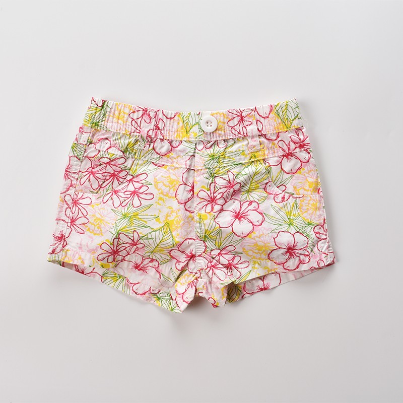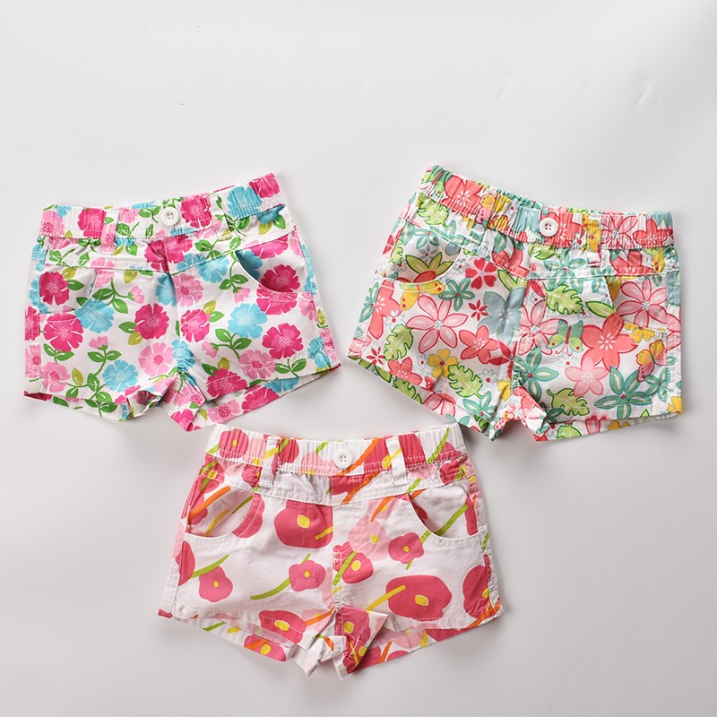 Calções de rapariga bonitos com estampado de flores em várias opções.
