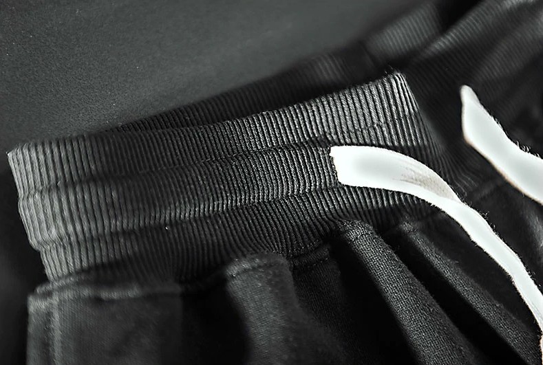 Os calções têm bolsos e ajustam-se com cordões.