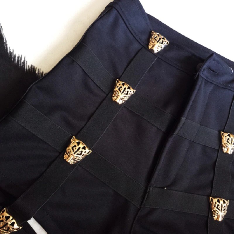 Os calções estão adornados com leopardos.