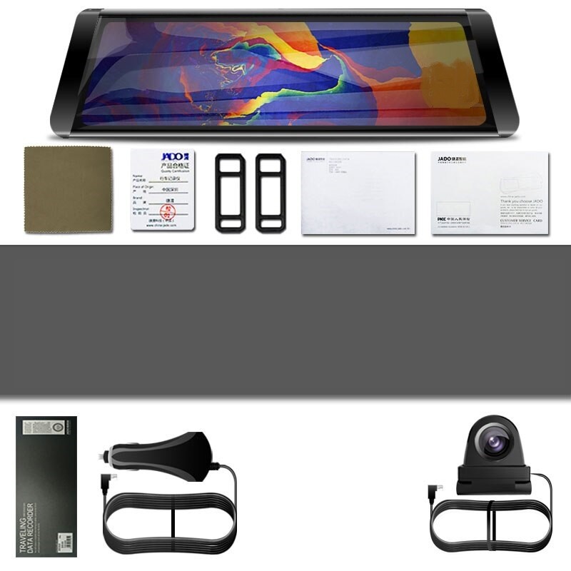 Conteúdo da embalagem: 1x câmara frontalno espelho retrovisor, 1x câmara traseira, 1x carregador, 1x acessórios de montagem, 1x manual do utilizador